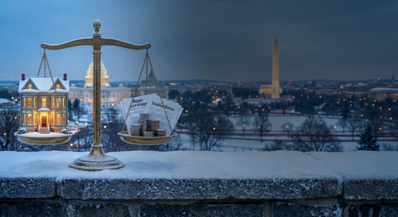 The "Soft Landing" has officially evolved into a "Rate-Cut Reality." With the Federal Reserve delivering its third consecutive cut this week, the cost of capital is easing, yet the local picture remains sharply divided. While Northern Virginia’s tech corridor shows resilience, the District is grappling with a historic inventory spike driven by federal sector shifts. The vibe? Opportunistic Caution. Buyers have leverage we haven’t seen in years, particularly in D.C. proper, while sellers in the suburbs hold steady ground.
